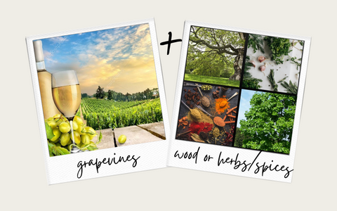 - the wood or spice/herb that the blend is named after (for example, rosemary in our Grapevine & Rosemary blend or a special blend of Italian herbs in our Grapevine & Italian blend).